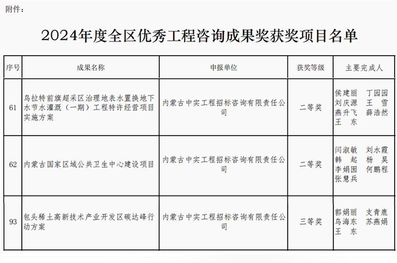 2025-04-167751 次2025年4月16日,内蒙古工程咨询协会公布了2024年度优秀咨询成果奖获奖单位名单,我司取得两个二等奖和一个三等奖,我司专业能力和服务质量再次获得行业的认可。此次获奖,不仅体…
